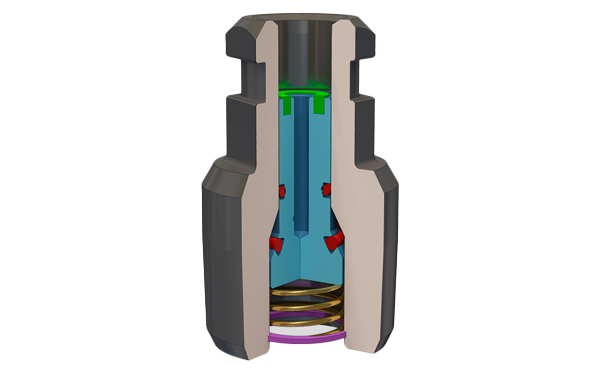 A válvula de contrapressão do tipo F é semelhante à do tipo H, mas permite a inserção de uma haste que a converte em uma válvula de duas vias para pressurizar a parte superior, usando uma ferramenta especialmente projetada.